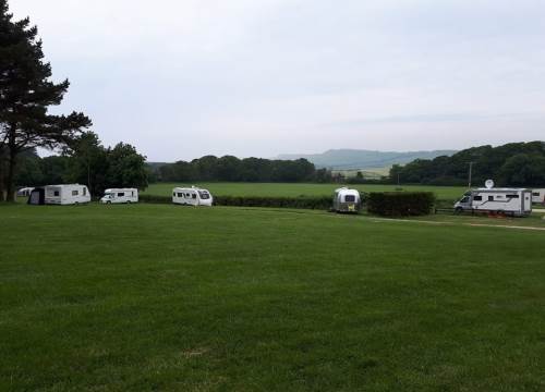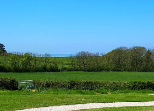 Our main field grass caravan pitches have stunning views of hills, fields and cliffs.