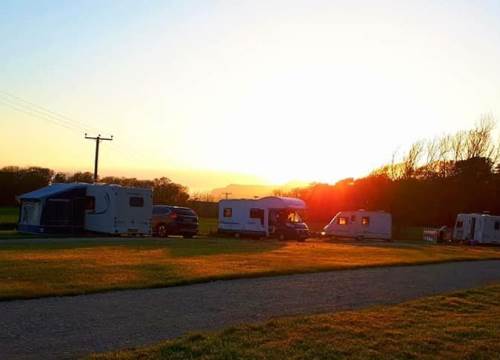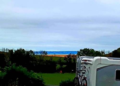 Pitches 35 and 36 are flattish grass hard standings with a layer of turf on a stone hardcore base providing a firm area for motor homes to pitch on whilst still giving the benefits of pitching on grass. Our paddock area pitches have beautiful views of fields, hills and cliffs with distant sea views over the bay (weather permitting) watch the sun setting over the sea and cliffs from your pitch