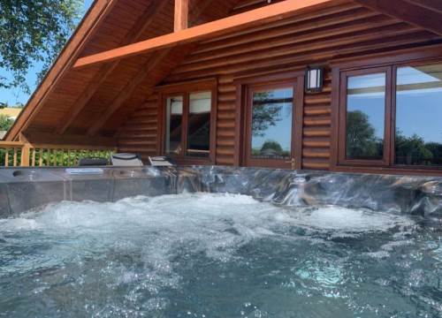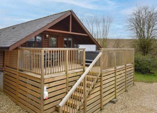 The luxury timber lodges have three bedrooms sleeping six and a private hot tub on the decking.