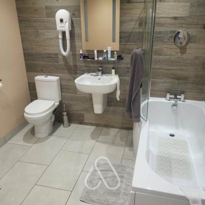 Family bathroom with bath, shower toilet and sink £10 per day Minimum of 2 night stay.