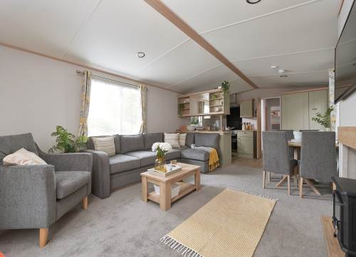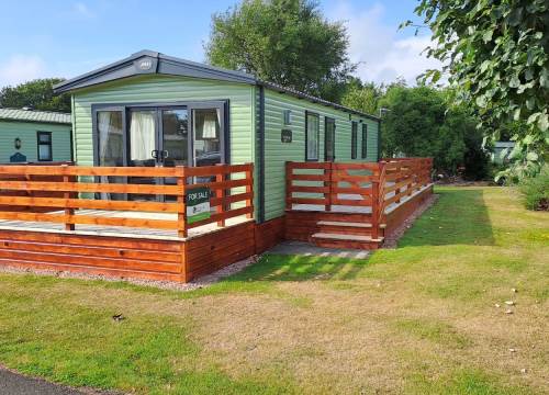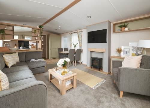 This caravan offers beautiful accommodation with a spacious living area, dining table as well as breakfast bar. The master bedroom features an en-suite WC, while the family bathroom includes a shower. Patio doors open onto a large decking area and car parking is available beside.