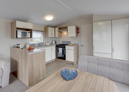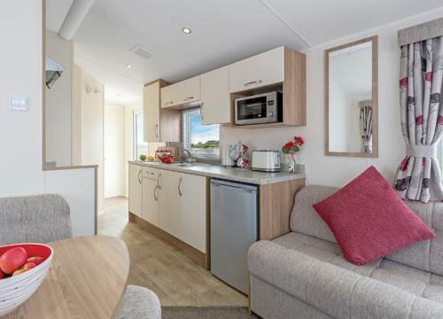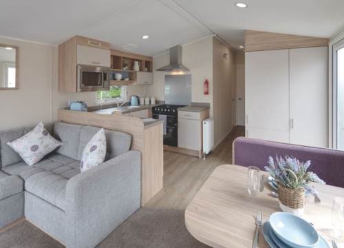 The 2 bedroom Deluxe Plus Extra 12ft wide Caravans come with an excellent level of design and equipment to cater for your comfort. Offering a master double room and a twin room. A well designed modern interior make them ideal for families or friends. Benefits from heating throughout, double glazed and well insulated. Our standards of cleaning are exceptional and all accommodation is carefully prepared for your arrival. WiFi powered by fibre optic available.