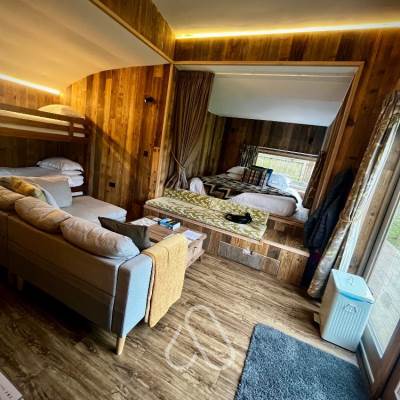 Each Wildflower Meadow Kabina sleep up to five persons in a king-sized bed twin bunks and pull-out sofa bed. They are well equipped with everything you need for your ultimate lavish Baxby manor escape!