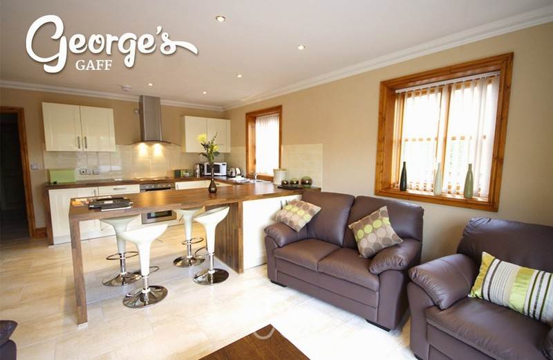 George's Gaff, a luxurious two bedroom cottage with an open plan sitting/dining room with well equipped kitchen area, shower room and WC, including linens, duvets and towels and a shared laundry room.
