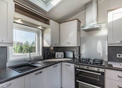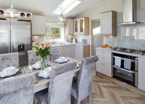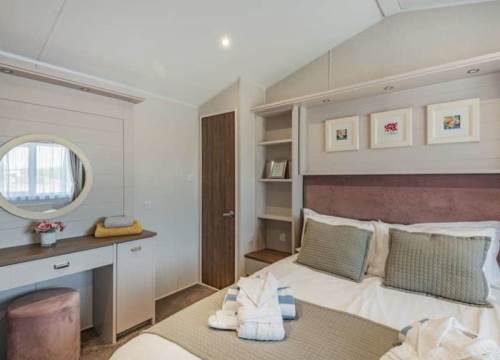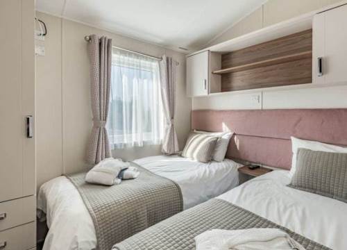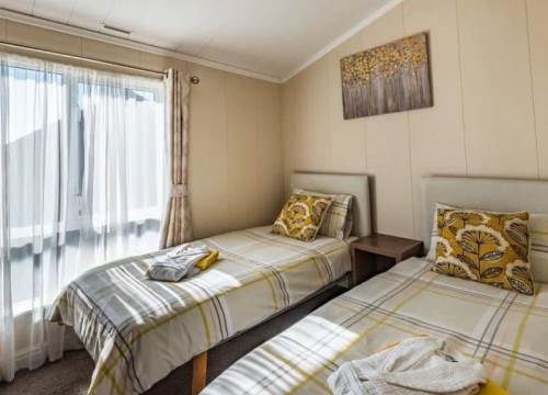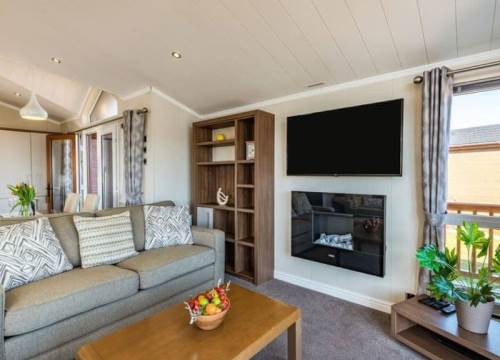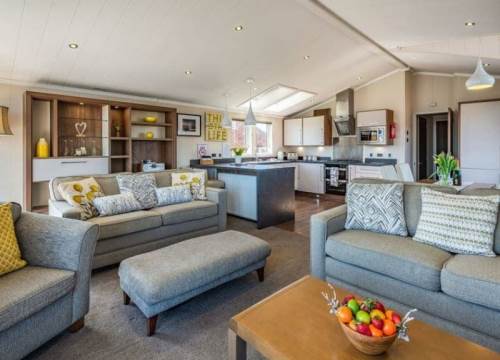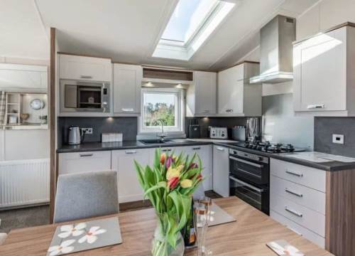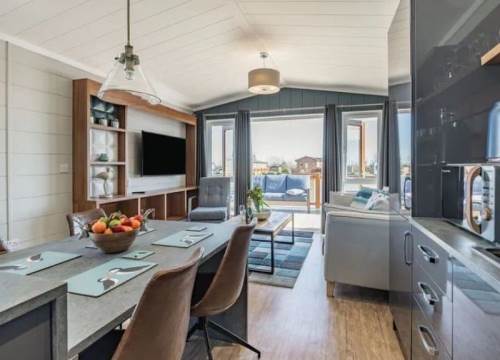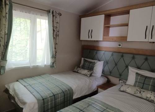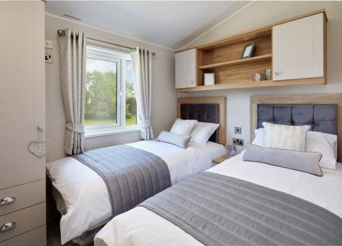 At 14ft x 43ft this Luxurious lodge offers open plan living with a large lounge & Kitchen. 2 bedroom’s with King size bed in Master ensuite & walk-in wardrobe, Twin bedroom & shower room, Front Patio Doors, Fridge Freezer, Dishwasher, Cooker Extractor Fan, Central Heating, Fitted Microwave.