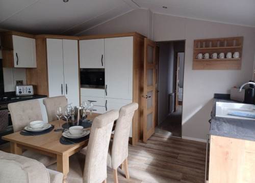The holiday home was very nice and well equipped. Beds were made for us and all of the bedding was clean. The hot tub was dissapointing and for me it was installed the wrong way around. Both of the bathrooms there was never any hot water in the wash basins, the showers were OK. We did have to buy an extra bath mat because the shower in the ensuite was very slippy. The munch box which was the on site eatery was supposed to be open from 0830 on weekends which it was not. There is nothing onsite, so anything you want you would have to drive at least 2 miles to a supermarket - Pub - Resturant - Chippy there was in the holiday home various phone numbers for takeaways that deliver to the site which we used twice. There was also a local taxi firms number but when we phoned they were shut for the week. We used uber which was OK. Overall the holiday home was superb but not the hot tub. If you want a quiet getaway this is the place for you.