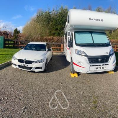 This is a hidden gem of a site. Located at the back of Ingliston Country Club at Bishopton.Good accessibility only a few minutes off the end of the M8.Good wide road in park. Nice pitches with fully serviced facilities of water, grey waste & electrics.Electricity is pay as you go. We were concerned it would be expensive. You scan a QR code then top up with money. We spent 82p over 2 nights. You then get a refund of money not used!! Actually a fair & easy system!Toilets are beautiful, cleaned daily. Good showers & a dish wash room.Setting is very quiet overlooking the fields with Paisley in the distance. Very picturesque.You can eat & drink in Palomino restaurant in Ingliston if you don't want to cook.Horses are a plenty with the stables beside the site.Sainsbury's is only a 5 minute drive from the site. Plus a chip shop. There's also a Co-op on the main street.All in all a great site with good facilities!