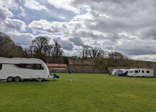 With 78 spacious, grass pitches 8m wide X 12m depth we are sheltered within the old walled gardens. Each pitch has EHU included and has access to free WIFI and TV aerial socket (NB: WIFI and TV can be variable and is outside of our control)