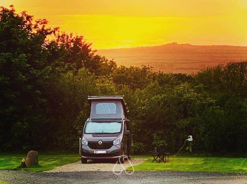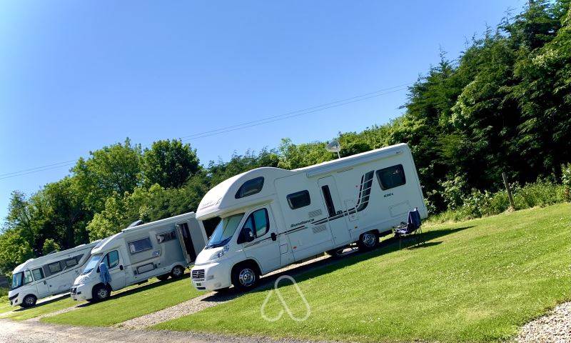 Hard standing with electric hook up & picnic table. Pitches limited to a maximum of 6 persons (4 adults). Two well behaved dogs welcome.