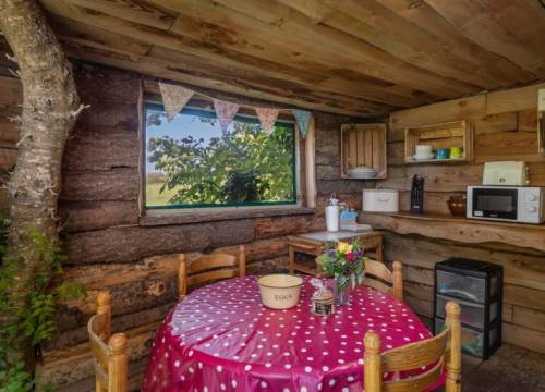 | Adjoining outdoor log cabin kitchen, built amongst living trees, for exclusive use of the occupants | |