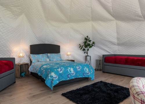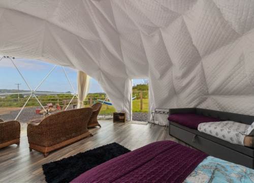 You can enjoy a spacious geodome or cosy Glamping pod. All are fully equipped with everything you will need.