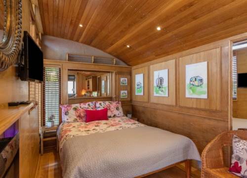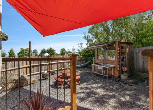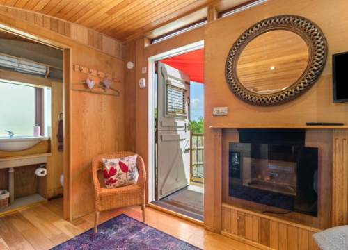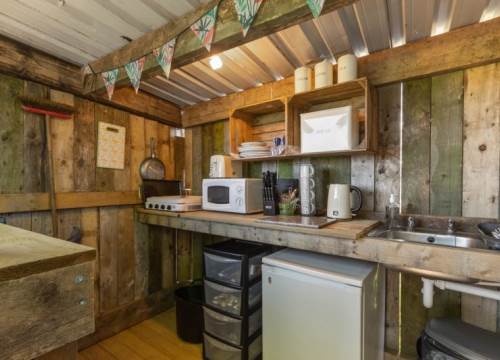 Open plan with double bed & 2 single beds & trundle bed. Outdoor cabin kitchen and shower room. Includes electricity, hot water and free WiFi.