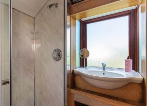 Sleeps 2 persons in a double bed . Cabin kitchen and internal ensuite shower room. Mains electric for power, heating and lighting.