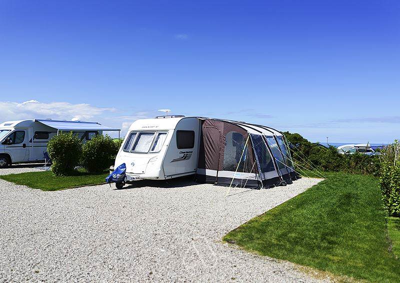 Gravel base, including 16amp electric hook-up point, fresh water tap, grey water drainage point. All hard-standing pitches benefit from hedges to three sides for privacy and shelter. You will need rock pegs for awnings, and for comfort under foot, you may wish to use an additional ground sheet. These pitches are not suitable for tents. Dogs welcome on these pitches.