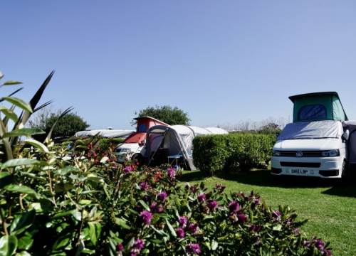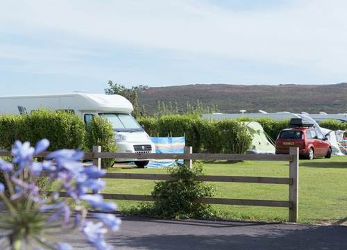 Grass pitch without any facilities. Some pitches benefit from hedges to three sides for privacy and shelter and some are more open and divided by lines in the grass. These pitches are suitable for all unit types. Dogs welcome on these pitches.