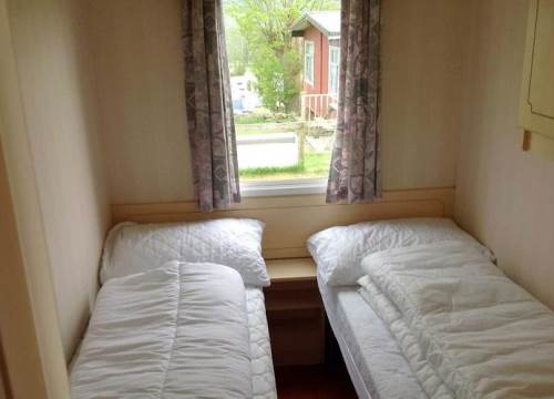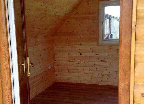 | Two bedroom wooden lodge - one double bedroom, the other has full sized bunk beds | |