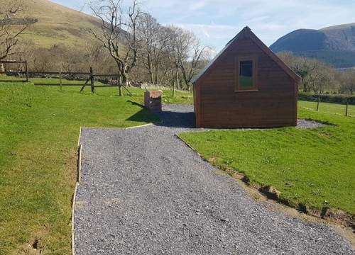 The Gerlet Pod is built from local timbers and has uninterrupted views of the Mynydd Mawr and Moel Eilio mountains. The Pod is very well insulated and has heating and lighting (inside and outside), as well as two power points.
