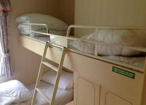 It has an open plan lounge and fully fitted kitchen. The bathroom has a shower, wash hand basin and w/c. The lodge has two bedrooms, one double bedroom, the other has full sized bunk beds.