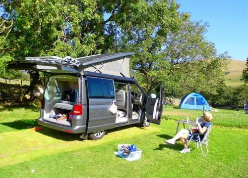 Grass large pitches for tents in excess of 6 m by 4m with Electric Hook-up. Suitable for caravans, campervans, motorhomes, tents and trailer tents.