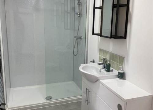 | Bathroom has a shower, w/c and wash hand basin | |