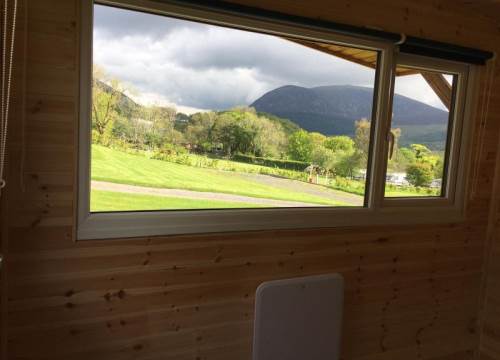The Hebog Pod is built from local timbers and has an uninterrupted views of Moel Elio and Mynydd Mawr mountains. The Pod is very well insulated and has heating and lighting (inside and outside), as well as two power points.