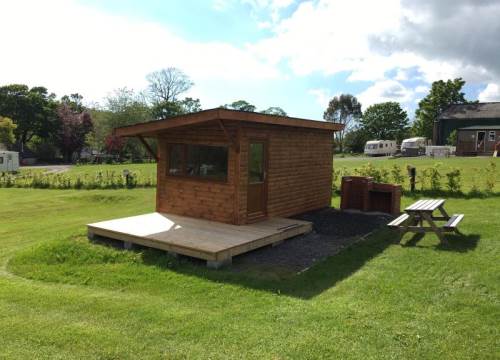 Outside there is a BBQ, cooking area, picnic table and a water point. The campsite showers and toilet facilities are close by.