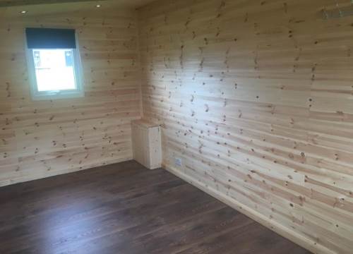 The lodge has a double bedroom, an open plan lounge, kitchen diner and fully fitted kitchen and shower room including wash hand basin and toilet.