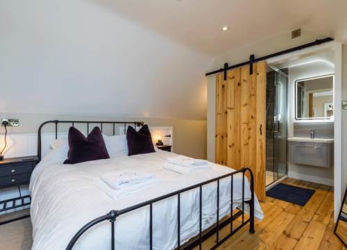 The hayloft is thoughtfully designed with everything you need for a luxurious stay. Cook up a storm in the fully equipped kitchen, sink into the handmade Chesterfield sofa by the fire, and retreat to the dreamy double bedroom after a day of exploring. The indulgent shower room adds an extra touch of luxury to this countryside haven.