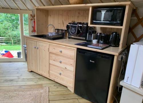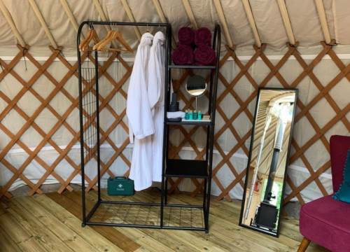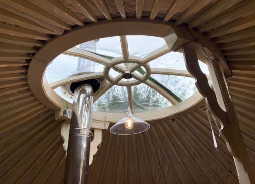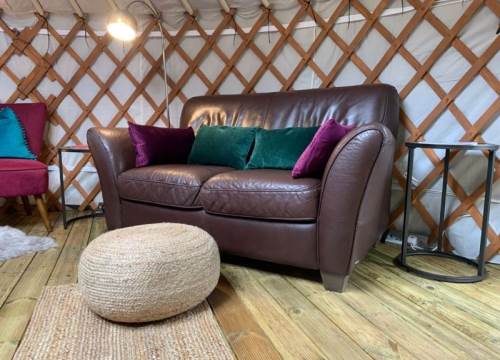 A luxurious yurt with king bed, hot tub & log burner. Perfect for a romantic retreat.