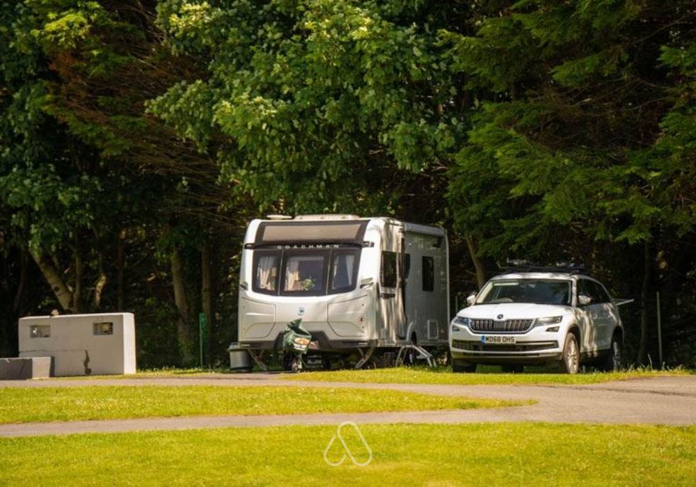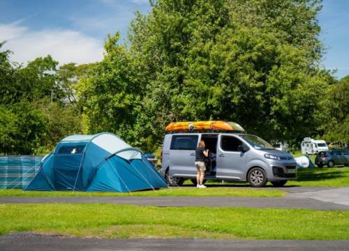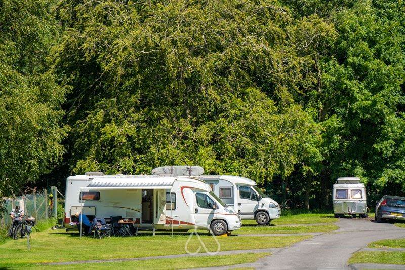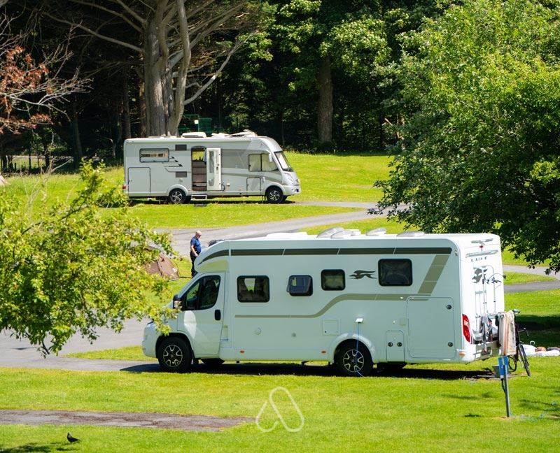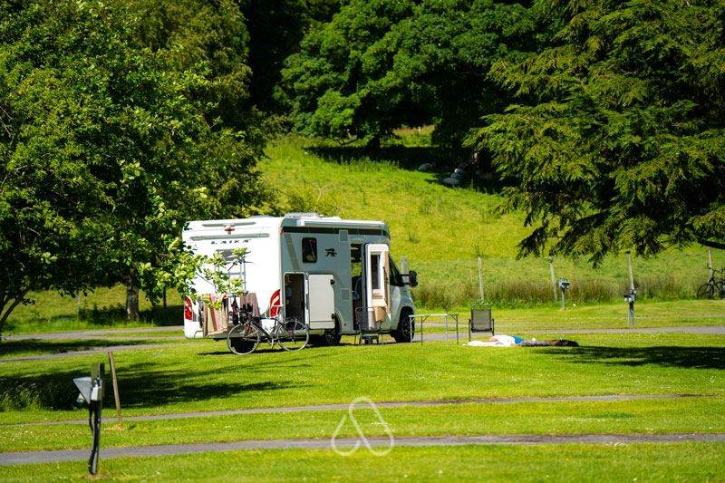 Hard standing level surface with 16amp electric hook up available. During high season, our onsite facilities include free hot showers, WiFi, recycling, wastewater, picnic and washing up areas, laundry, bar & café.