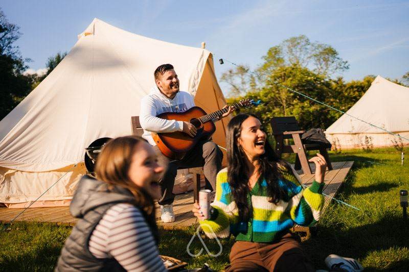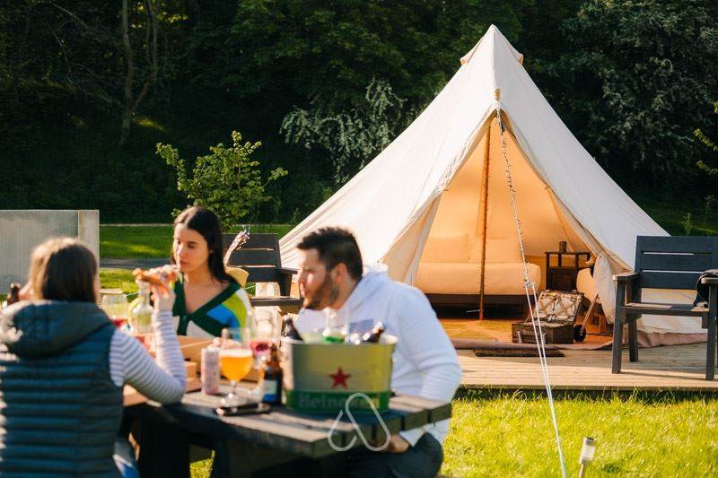 Relax in one of our 5-meter Bell Tents (sleeps 4) and look forward to hot shower access, free Wifi, electrical outlets, picnic benches and a recreation room.