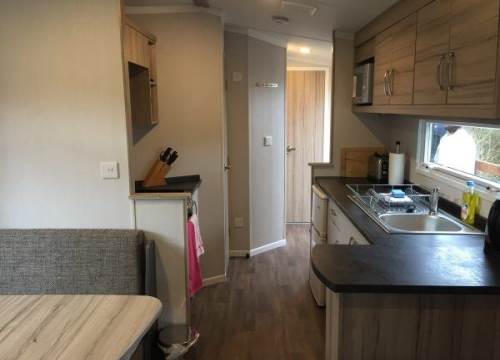 Our Holiday home is connected to all mains services and meets modern standards and expectations for a caravan of it’s type. The fully equipped kitchen has a full size gas cooker, microwave, stainless steel sink, and fridge with small freezer compartment. Standard kitchen items such as knives, forks, spoons, pots and pans are all provided as are cleaning liquids and cloths.