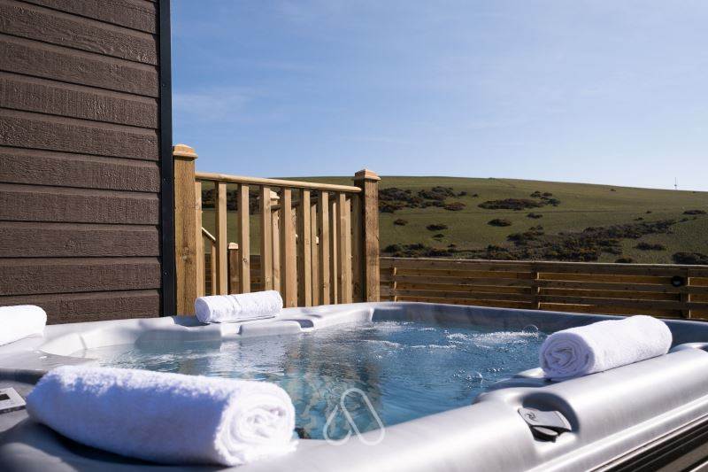 These prestigious 3 bedroom caravans were brand new in 2025 and are from our luxury range of caravan models, boasting breath-taking Devon countryside and sea views! Each Diamond Caravan has one kingsize bedroom, one twin bedroom (2ft 3'' single beds) and a double sofa bed in the lounge – all with duvets & pillows (linen must be hired or you can bring your own). For maximum comfort, each caravan has central heating, double glazing and a deck with a sunken hot tub to enjoy for an additional charge.