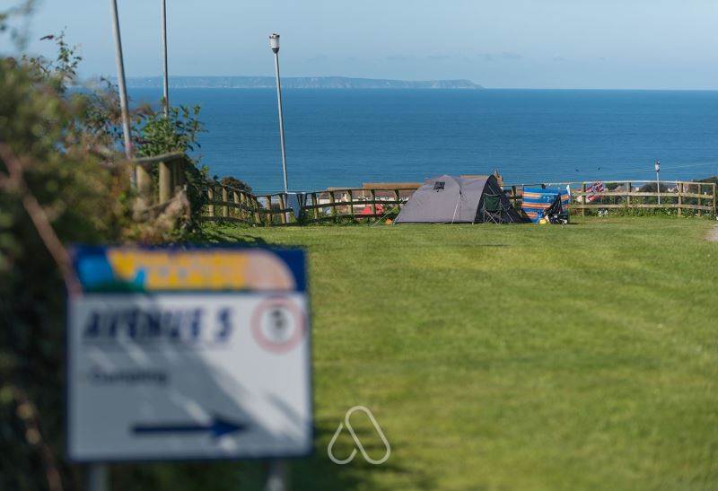 Grass Basic Pitch with sea views. These non-electric pitches will accommodate either a 6 berth tent or small camper van.
