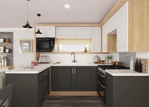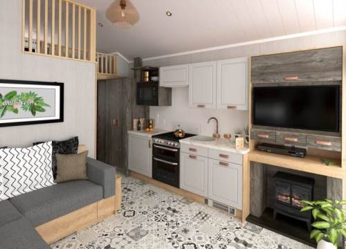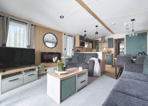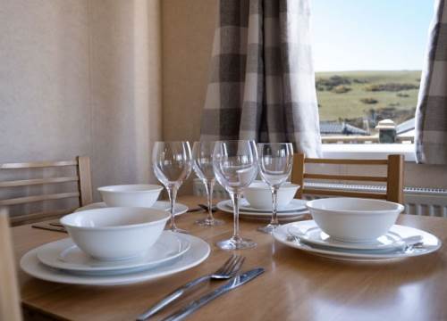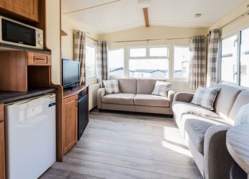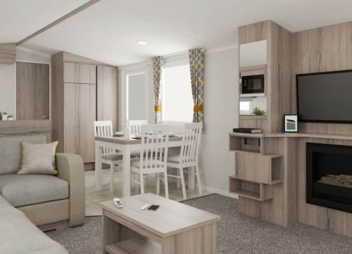 They even has an optiflame electric stove feature fire, fully equipped kitchen and large washroom with separate shower cubicle. Open plan lounge and kitchen Large L Shape Sofa with fold out double bed and rear dining area with seating up to six and fixed gas assisted telescopic table which makes into a double bed. Linen and towels can be added at an additional cost.