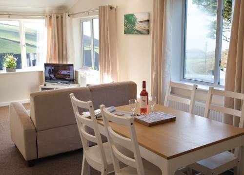 The Gate Keepers Chalet has stunning sea and valley views and sleeps 7. It has one double bedroom, one triple bedroom with bunk beds and a single bed and a double sofa bed in the lounge. We provide duvets and pillows for all beds in the chalet, linen is available to hire, or you can bring your own (you will need a duvet cover, pillow cases and flat/fitted sheet per bed). The kitchen is equipped with a dishwasher and full sized fridge-freezer. Parking outside the chalet for 1 car. Please advise if you are bringing more than 1 vehicle. The Gate Keepers Chalet is pet free and located on a corner.