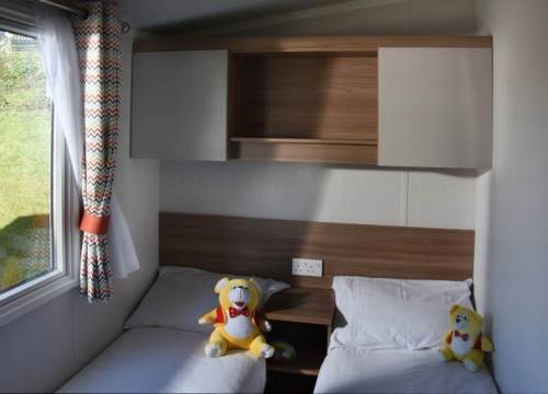 Luxury 2 bedroom caravans boasting breath-taking Devon countryside and sea views. Each caravan has one double room, one twin bedroom (2 foot single beds) and a double sleeping area in the lounge – all with duvets & pillows (linen must be hired or you can bring your own). For maximum comfort, each caravan has central heating and double glazing.
