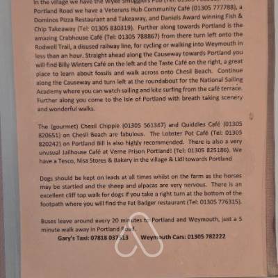 Found it a bit difficult to find but loved itStaff lovely Easy to get bus to Weymouth A bit muddy at the entrance but it’s a farmFacilities good